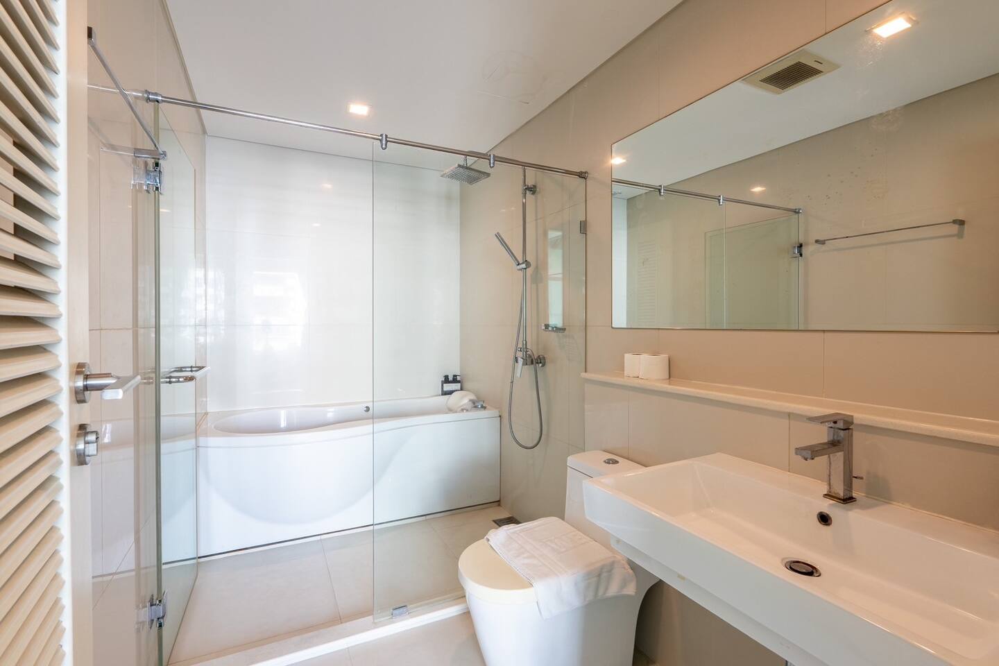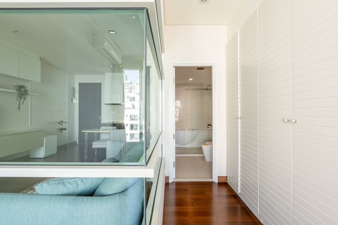 Enjoy the whole apartment to yourself, along with the building’s shared facilities: a refreshing pool, well-equipped gym, relaxing sauna, and peaceful garden spaces.